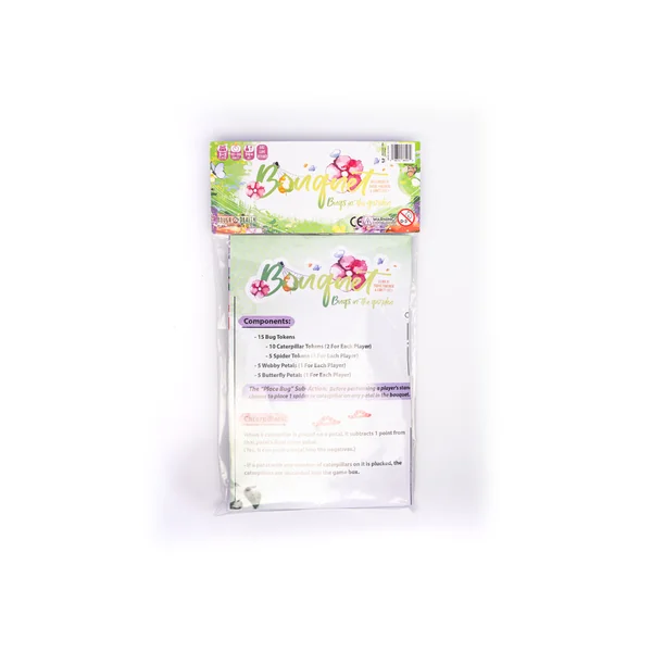- Bouquet : Bugs in the Garden ajoute une touche d’insectes à votre bouquet de fleurs préféré avec de nouveaux pétales et meeples sur le thème des insectes ! Les araignées échangent la position des pétales, tandis que les papillons peuvent bloquer avec précision la progression de vos adversaires. Si vous souhaitez enrichir vos parties de Bouquet, cette extension est faite pour vous !