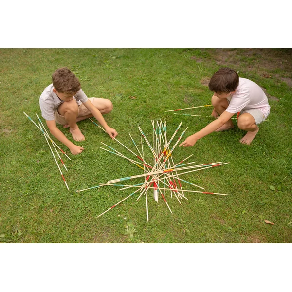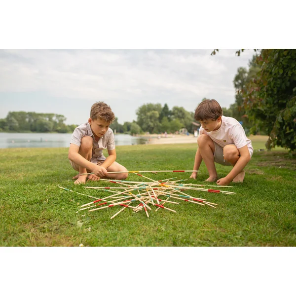 Le jeu Mikado pour 2 à 6 joueurs à partir de 8 ans est fabriqué à partir de longues tiges en bambou. L’ensemble comprend 31 tiges en bambou dont la forme naturellement irrégulière ajoute au défi. Les joueurs tirent alternativement les tiges individuelles, en essayant de ne pas bouger les autres – idéal pour développer la motricité fine et la patience.