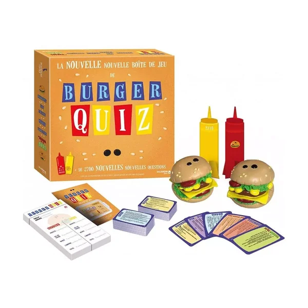 Burger Quiz – V2 est un jeu de société d’ambiance accessible dès l’âge de 10 ans pour des parties de 20 minutes environ avec de 2 à 8 joueurs. Il est édité par Dujardin.
