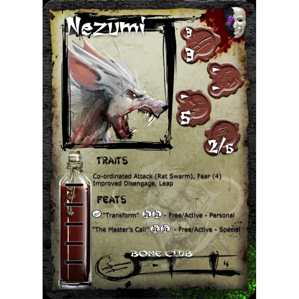 La dernière recrue du culte de Yurei, Nezumi est discret sur le champ de bataille, se transformant en un rat et se précipitant au loin quand le moment est venu.