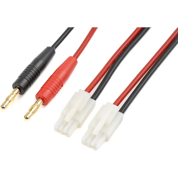 Câble de charge avec bananes de 4 mm et connecteurs Tamiya appareil (femelle) connectés en série, câble de 14AWG d’une longueur de 30 cm.