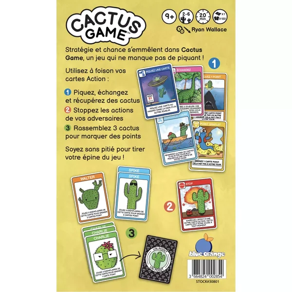 Cactus Game est un jeu de société d’ambiance jouable de 2 à 6 joueurs, dès 9 ans pour des parties d’environ 20 minutes, édité par Blue Orange.