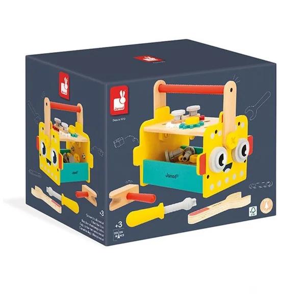 Composée de bois certifié ***™, cette caisse à outils robot fait partie de notre collection de jouets d’imitation bricolage : Brico’Kids.