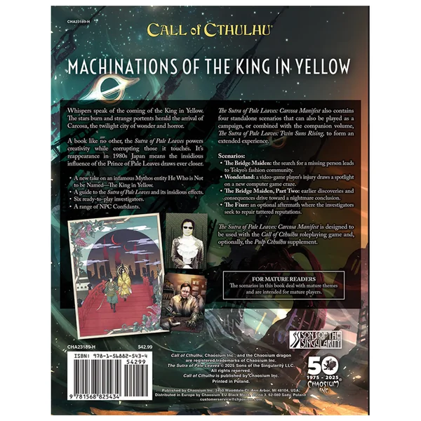 Des murmures annoncent l’arrivée du Roi en Jaune. Des étoiles naissantes et d’étranges présages annoncent l’avènement de Carcosa, la cité crépusculaire mêlant merveille et horreur…