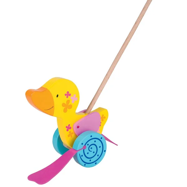 Cet adorable canard fait flap flap avec ses grandes pattes lorsqu’on le pousse!