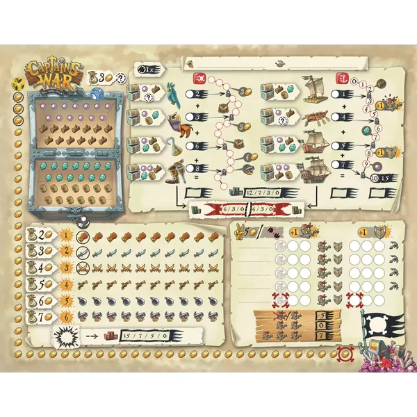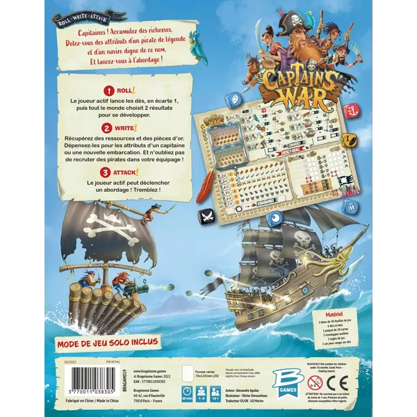 Captains’ War est un jeu de roll & write stratégique où l’interaction et les attaques entre les joueurs sont au coeur du jeu. Il est édité par Bragelonne Games.
