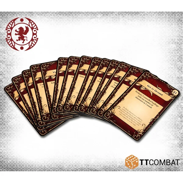 Ces 36 cartes contiennent des Objectifs pour le jeu, du meurtre des chefs adverses à la chute dans le canal. Il vous suffira de tirer les cartes et de suivre les règles de la carte de présentation pour gagner des points de victoire supplémentaires dans vos parties de Carnevale.