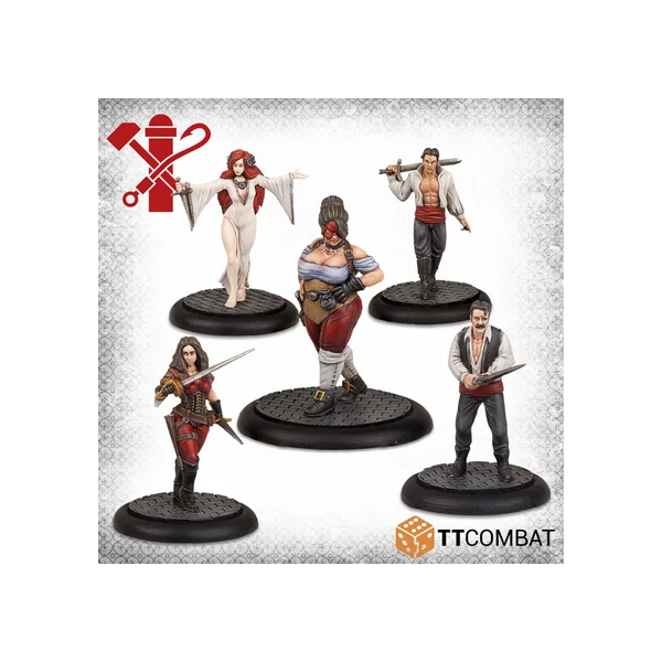 Deux Endettés, maudits et forcés de tuer pour rembourser ce qu’ils doivent aux courtisanes, complètent l’escouade. Une Escort vient ajouter un peu de muscle à l’ensemble.