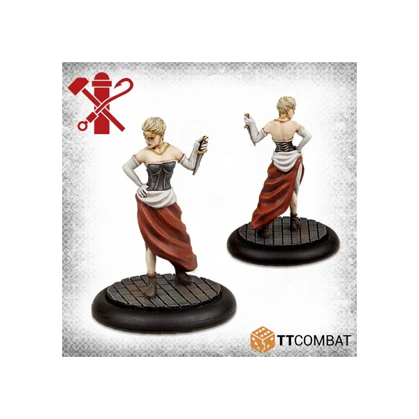 La boîte contient une Matronne de Sang armée d’une aiguille de piquage pour diriger son Coven de Sang. Une Couturière devine les destins, utilisant sa magie pour protéger ses sœurs du Coven, et un Messager de Sang est chargé de transporter le sang collecté lors des orgies de sang. Enfin, deux Prostituées réalisent des actes de saignée, renforçant le Coven.