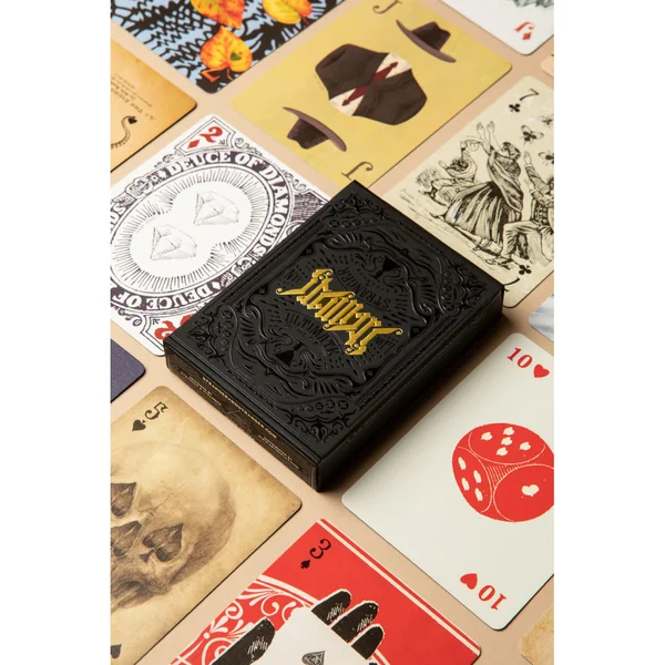 Il comprend 54 œuvres d’art uniques, chacune avec un dos élaboré imprimé en encre noire en relief et avec des détails en feuille d’or. Chaque carte du Ultimate Deck raconte une histoire, mêlant art classique et créations des illustrateurs contemporains les plus renommés.
