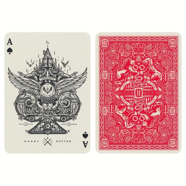 Les cartes Harry Potter présentent des illustrations entièrement personnalisées dans tous les aspects. Les As, les Jokers, le design de la boîte et les cartes de courtoisie sont directement inspirés des personnages et des événements préférés des fans du monde des sorciers.