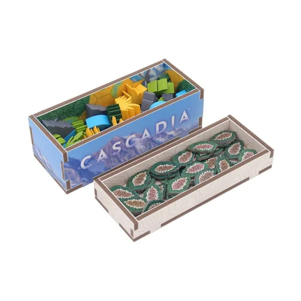 Rangement pour Boîte avec insert couleur officiel compatible avec Cascadia et son extension Paysages de la marque Folded Space. La conception offre à la fois un stockage efficace et un jeu amélioré.