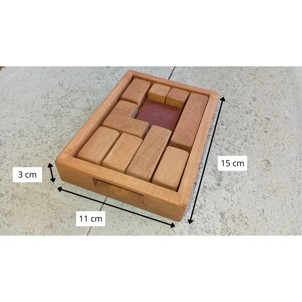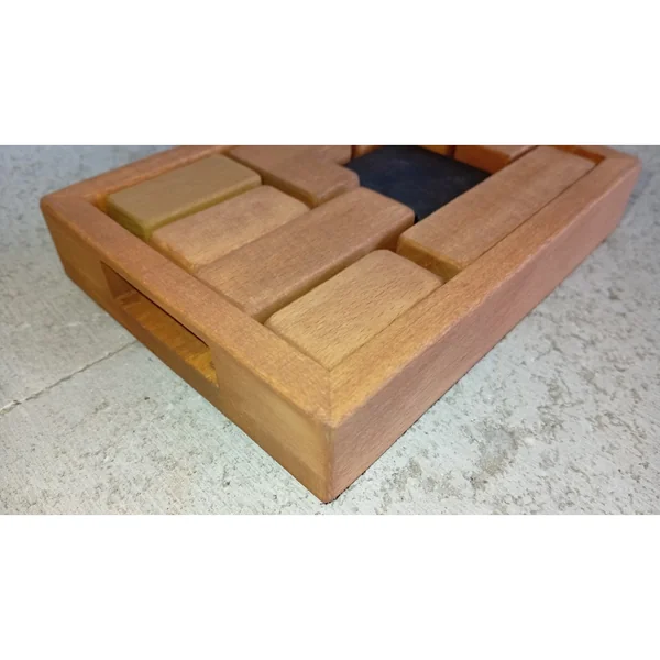 Chaque pièce est soigneusement taillée, poncée puis huilée à la main pour révéler la beauté naturelle du bois tout en offrant une prise agréable. Ce casse-tête de déplacement évolutif propose 3 niveaux de difficulté et 13 configurations de départ, permettant de rejouer à l’infini.