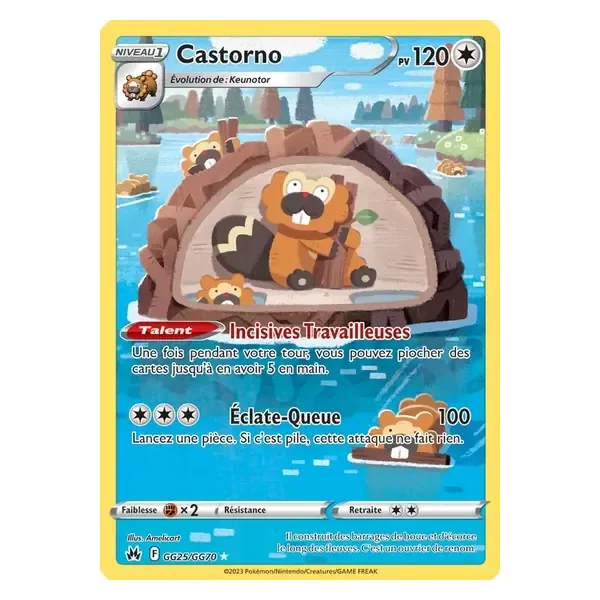 Découvrez Castorno (crzGG25), une carte Pokémon de l’extension Zénith Suprême, provenant du bloc Épée & Bouclier. Idéale pour compléter votre collection, cette carte Holo Rare plaira autant aux collectionneurs qu’aux joueurs.