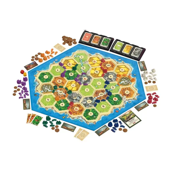 Avec l’aide des chevaliers, protégez le littoral de Catan et repoussez les invasions barbares. Enfin, mettez tout en œuvre pour restaurer la splendeur du château qui abrite le Conseil de Catan. Une extension indispensable si on souhaite jouer à plus de 4 joueurs !