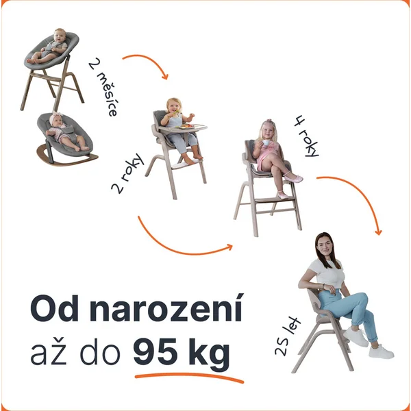 La chaise Zopa Inspira n’est pas seulement pour quelques mois – grâce à la hauteur réglable du siège et du repose-pieds, elle s’adapte à chaque étape de la croissance. En mode enfant, elle convient de 6 mois à 15 kg, et en version junior, elle supporte jusqu’à 95 kg.