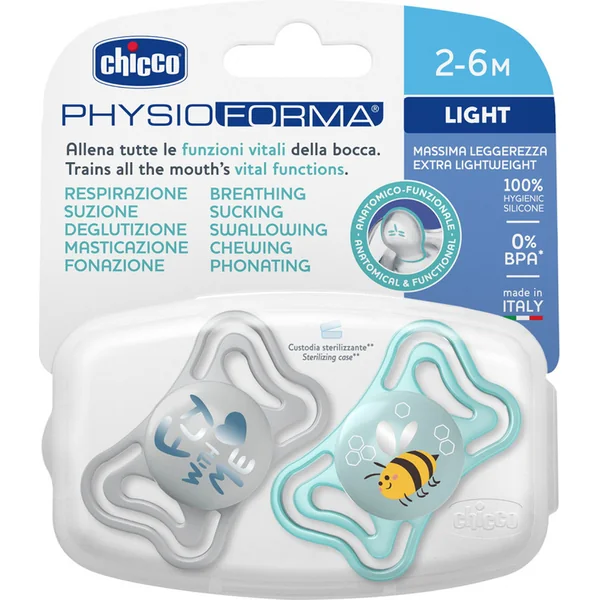 CHICCO Sucette Physio Light silicone garçon 2-6m, 2 pcs