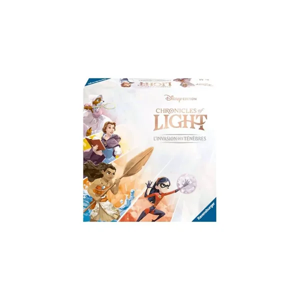 Chronicles of Light – L’Invasion des Ténèbres contient : 4 magnifiques Figurines translucides, 92 Jetons, 8 Dés, 30 Cartes, 5 Plateaux de jeux, 10 Tuiles terrain, 1 sac en tissu.
