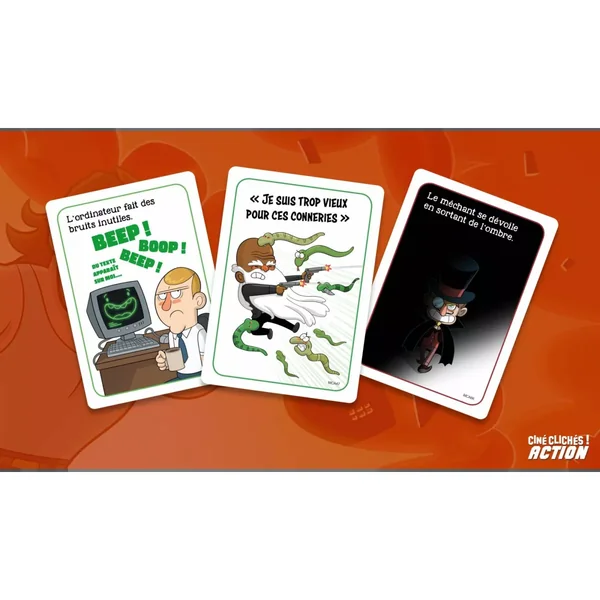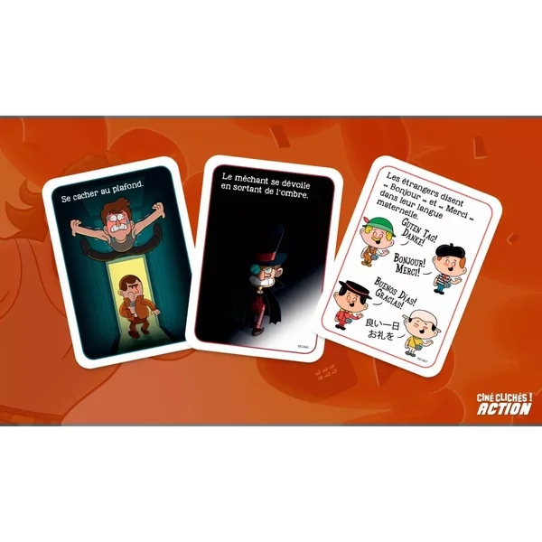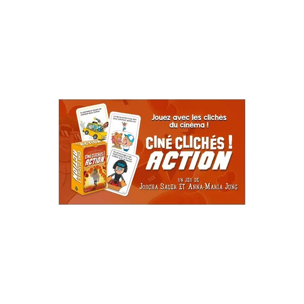 Ciné Clichés ! – Action est un jeu de société d’ambiance jouable de 2 à 10 joueurs, dès 10 ans pour des parties d’environ 30 minutes, édité par Don’t Panic Games.