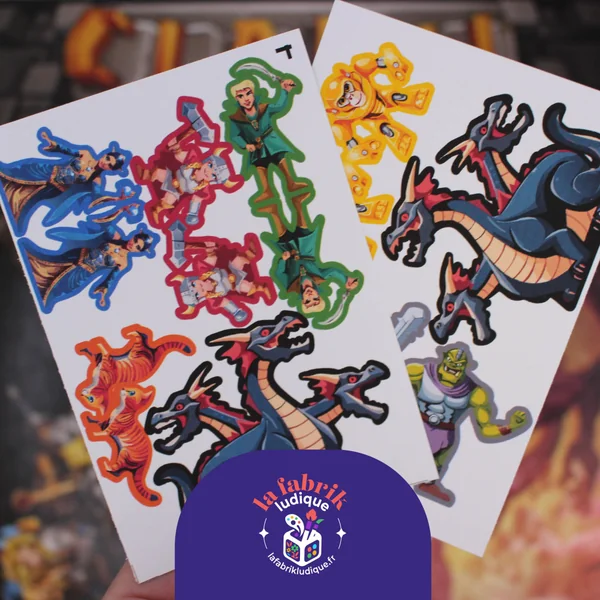 - Stickers recto/verso pour vos aventuriers et le boss « Hydre »