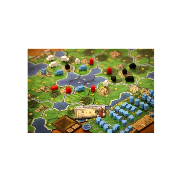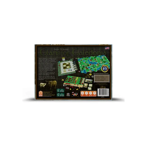 Clans of Caledonia est un jeu économique stratégique et interactif se déroulant dans l’Écosse du 19e siècle. À cette époque, l’Écosse est passée d’une économie majoritairement agricole à une économie industrialisée, fortement axée sur le commerce et l’exportation. La production alimentaire a augmenté pour répondre à la croissance démographique, les importations de coton bon marché ont progressivement remplacé le lin, et l’élevage de moutons a pris de l’importance. De plus, le whisky est devenu la boisson alcoolisée premium en Europe !