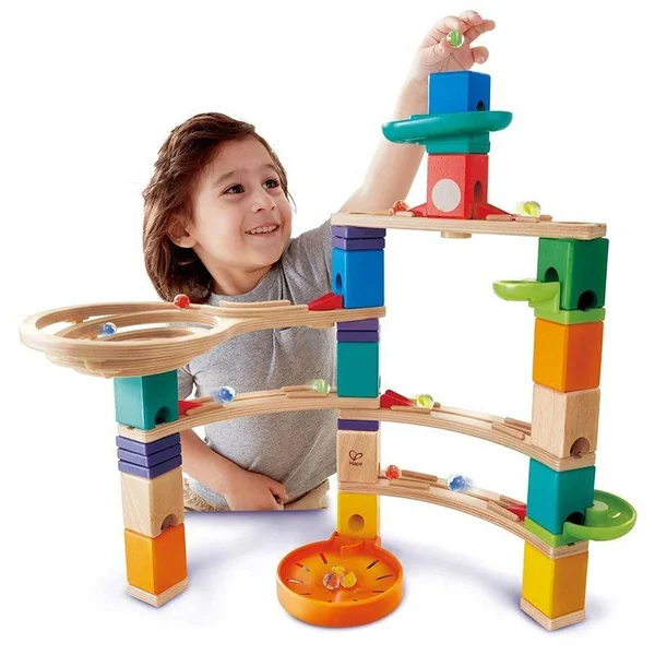 Découvrez le Cliffhanger circuit de billes de Hape, de la gamme Quadrilla pour les enfants à partir de 4 ans.