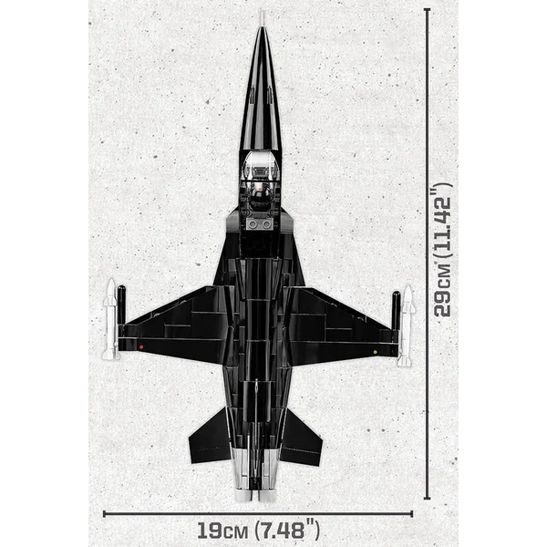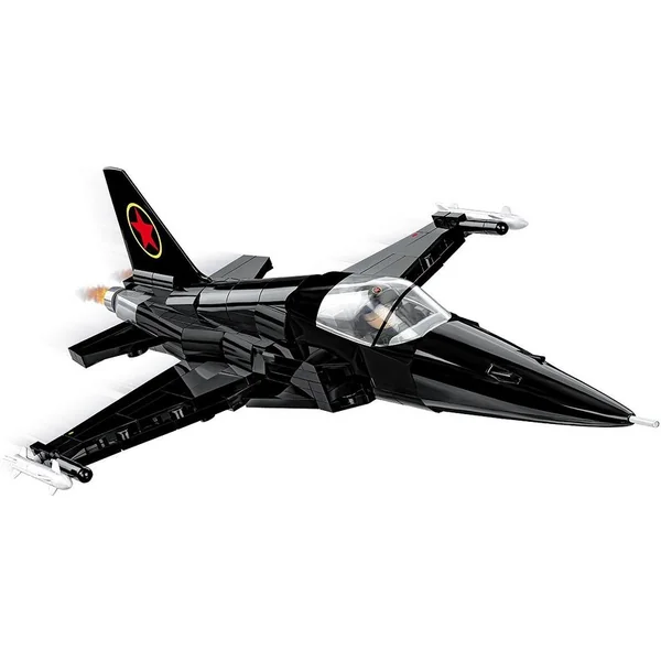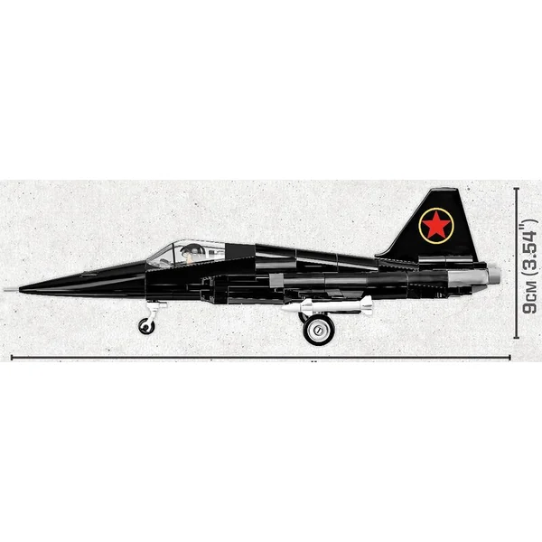 Avec 332 blocs de construction COBI, vous pouvez construire un incroyable avion d’une mystérieuse puissance étrangère qui a osé se dresser contre les pilotes américains de F-14 ! Le set sous licence a été construit avec une attention maximale aux détails et basé sur les plans de l’avion F-5 Freedom Fighter. La couleur noire caractéristique et les emblèmes avec l’étoile rouge empêchent toute confusion avec un autre appareil cinématographique ! L’avion a des ailes mobiles, des armements et un train d’atterrissage amovible. Le cockpit s’ouvre et vous pouvez placer une figurine simplifiée avec un casque portant l’étoile rouge caractéristique ! Le set comprend également un support et une plaque avec le logo Top Gun !