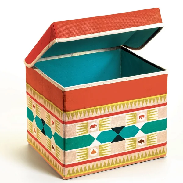 Un coffre à jouets coloré au style amérindien. Un joli objet de décoration parfait pour que tout soit bien rangé ! Solide grâce à sa structure en bois, il se transforme en un siège pour enfant (poids max : 30 kg).