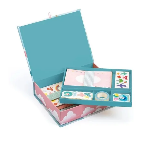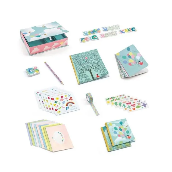 Un coffret de papeterie complet aux douces illustrations. Les écrivains en herbe aimeront y noter idées et pensées, ou dessiner et décorer avec les stickers.