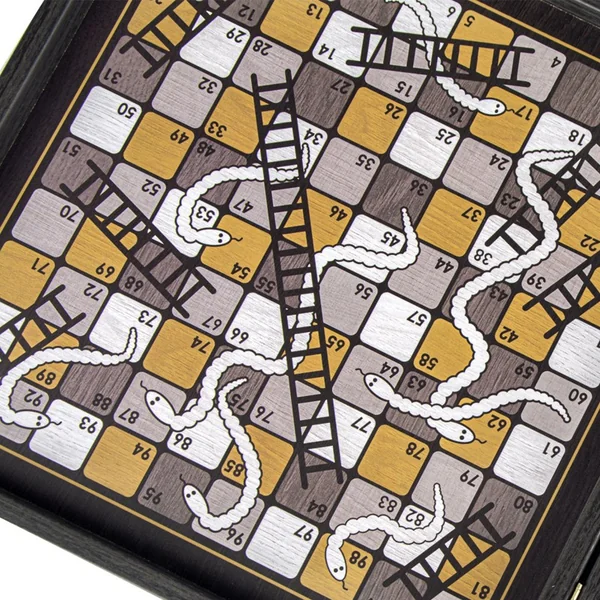 Ce coffret contient les jeux de Backgammon, petits chevaux, echecs et serpents et échelles, ainsi que tous les éléments nécessaires aux jeux dans des pochettes en tissu.