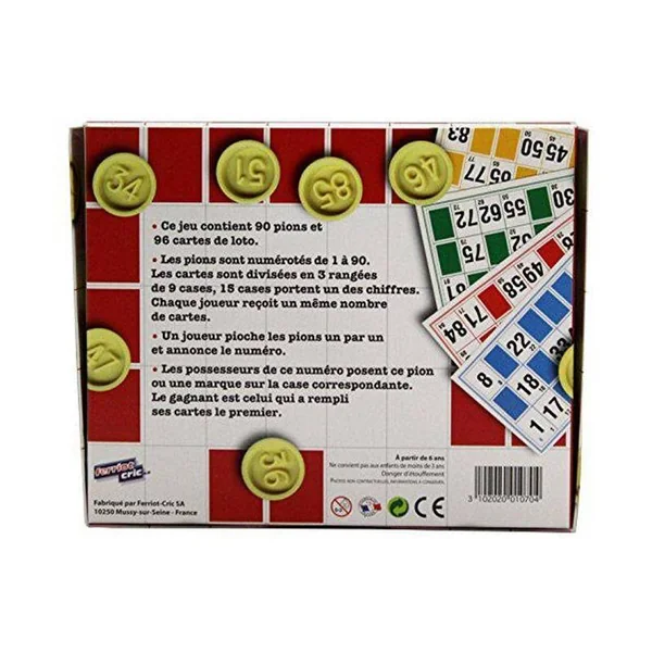Contenu du jeu : 1 Coffret comprenant 96 cartes et 90 pions de 1 à 90.