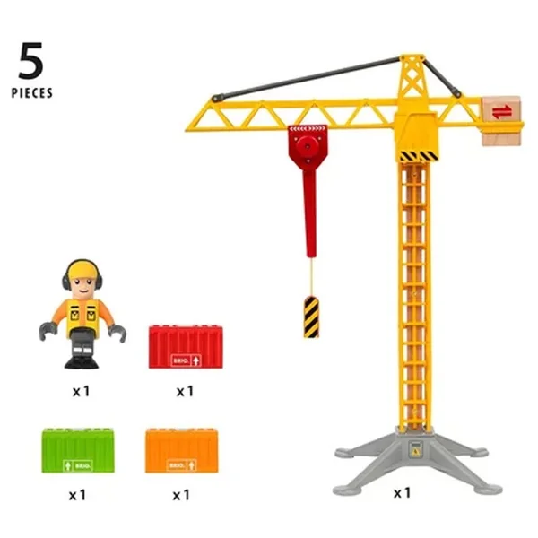Haute d’une cinquantaine de centimètres, la grande grue lumineuse (33835) est prête à relever tous les défis de construction au sein du BRIO World. Multifonction, cette grue permet de gérer aussi bien les chargements que les travaux de construction. Elle est équipée d’une tour rotative à 360 degrés, d’un chariot mobile et d’un crochet magnétique. Tous ceux qui sont au sol ne manqueront pas de remarquer que les feux réalistes s’allument et que l’opérateur se met au travail, confortablement installé dans sa cabine.