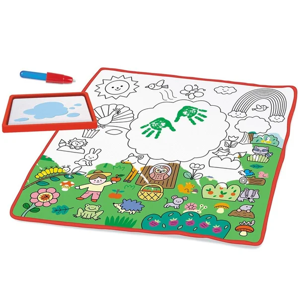 Une activité créative sans bavures qui stimule la curiosité. Un beau tapis, un stylo à eau et un bol spécialement pour les petites mains.