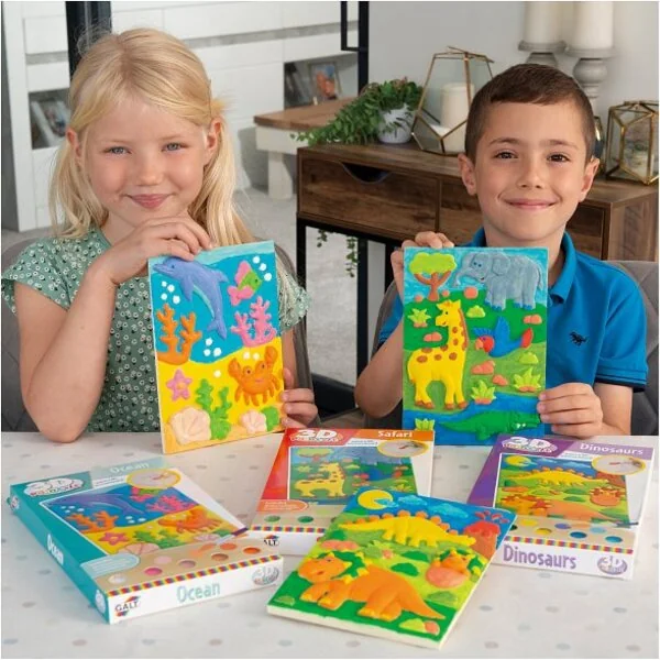 Avec ce set de coloriages 3D, les enfants peuvent créer de magnifiques images en trois dimensions à l’aide des couleurs et des pinceaux inclus dans l’emballage.
