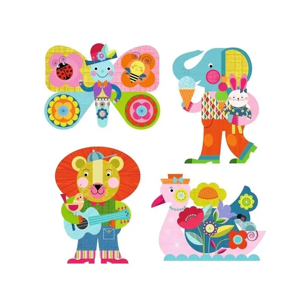 • 4 planches illustrées et silhouettées en plastique souple avec une zone blanche qui disparait