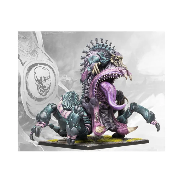 Développées parallèlement aux Desolation Beast, les Consumption Beast étaient à l’origine destinées à consommer les résidus d’un bassin de reproduction avant que les Desolation Beast ne soient lâchées. Il pouvait s’agir des derniers fluides et structures amniotiques restant dans une cuve après une reproduction réussie, mais d’autres scénarios plus sombres sont tout aussi courants. C’est en fait en observant une Consumption Beast dévorer une cuve de drones défectueuse que le Directorat a eu l’idée de les déployer sur le champ de bataille. Le carnage que ces monstres à plusieurs pattes ont semé sur le champ de bataille a enthousiasmé les observateurs et a assuré leur déploiement en masse. L’impact psychologique de manger, et pas seulement de tuer ses ennemis, n’est que la cerise sur le gâteau pour le Directorat. Cette boîte contient :