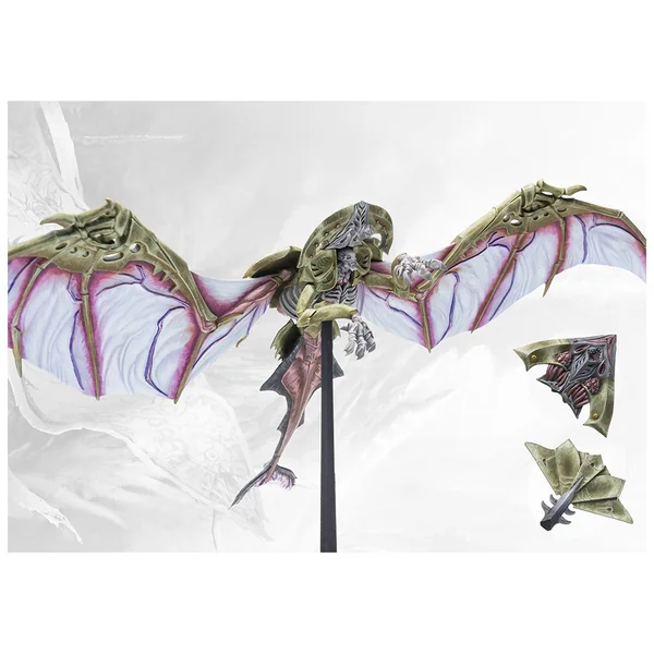 L’une des premières applications de la biomancie à l’art de la guerre — et parmi les plus réussies —, les Pteraphons furent initialement conçus par les Spires comme chasseurs de dragons. La futilité de cette ambition fut révélée au grand jour lorsque les Dragons Anciens se réveillèrent et ridiculisèrent leurs créations. Mais la Direction n’a jamais été connue pour gaspiller ses ressources. Raffinant leurs travaux, ils reconvertirent l’armure en supprimant la majeure partie de son système nerveux pour la transformer en une combinaison symbiotique, offrant à son porteur le pouvoir de voler et des sens accrus.
