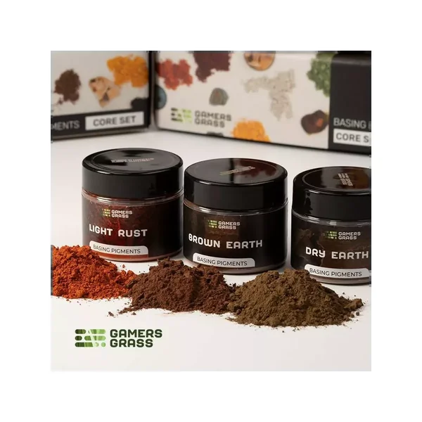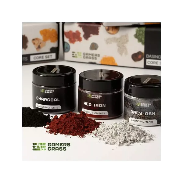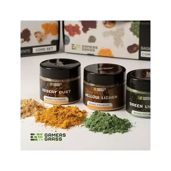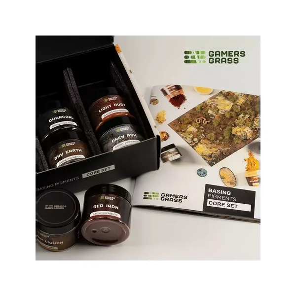 Core Set : Basing Pigments est un set de base contenant des pigments secs de couleurs différentes pour vos socles, édité par Gamers Grass.