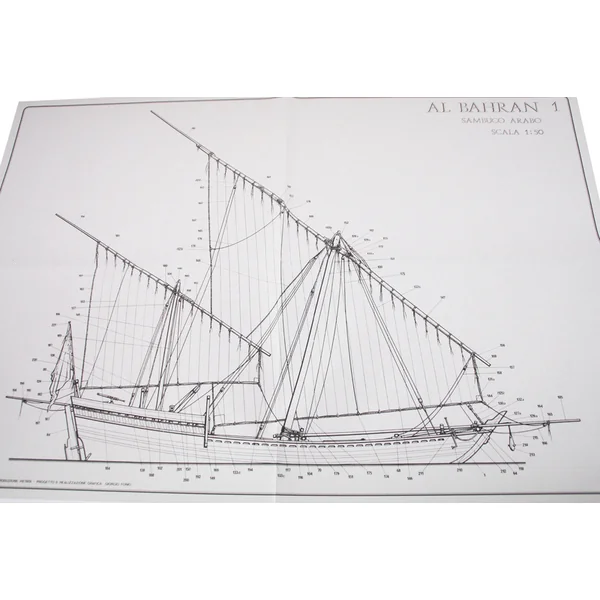 Le modèle est une représentation typique des embarcations utilisées dans la région de la péninsule arabique tant pour la pêche que pour le transport de marchandises en mer ouverte. Pendant l’occupation coloniale, la marine italienne a équipé ces bateaux de petits canons de 37 mm. Spécifiques sont un à trois mâts inclinés vers l’avant, de grandes voiles trapézoïdales (appelées Settie-sail) et un gouvernail.
