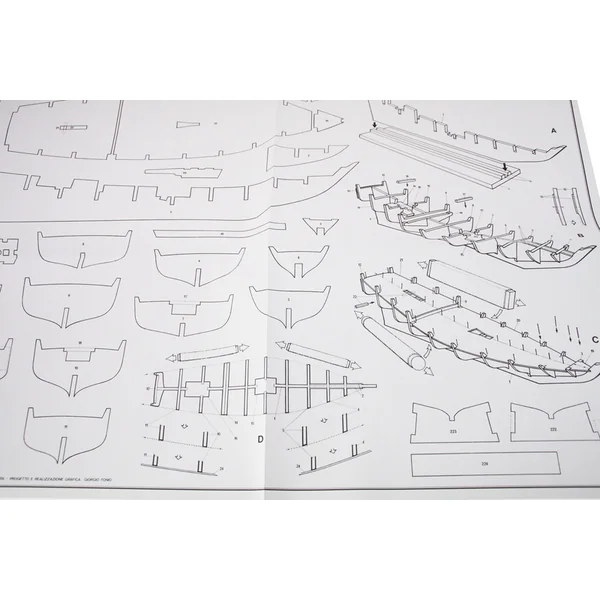 Le set contient un ensemble complet de documentation de dessin du modèle à l’échelle 1:1 avec la procédure de construction, les pièces sont soigneusement marquées sur le dessin et il y a aussi une liste des différentes parties du modèle.
