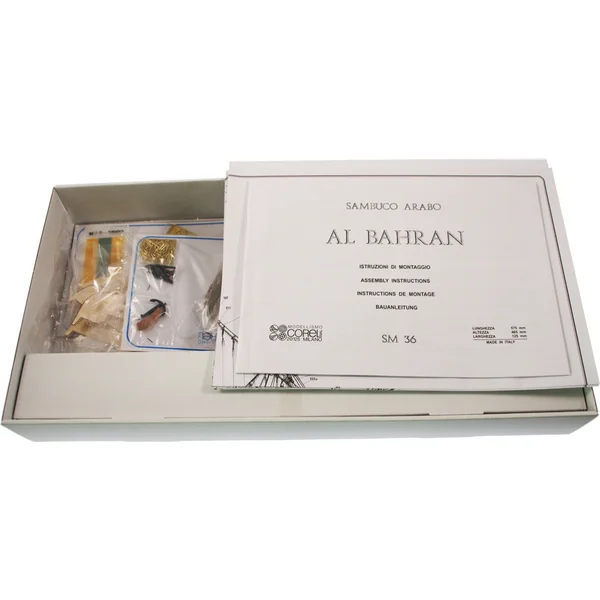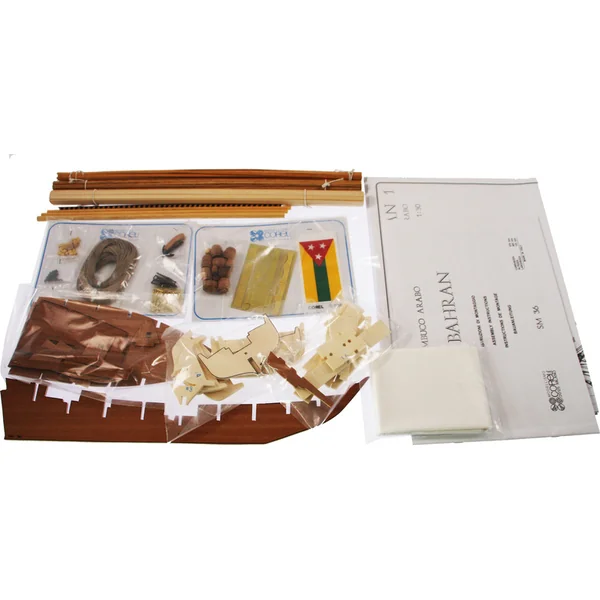 Le modèle non flottant COREL Al Bahran 1:50 kit est un kit de maquette en bois de bateau. Le bateau était utilisé autour de la péninsule arabique tant pour la pêche que pour le transport de marchandises en mer ouverte. Le kit contient le matériel nécessaire à la construction, le matériel, les petits accessoires et les plans de construction.