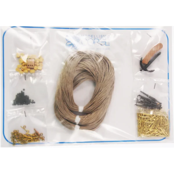 Pour la construction de modèles de bateaux, des outils appropriés sont nécessaires. Nous recommandons un excellent ensemble d’outils Modelcraft pour modélistes navals (ensemble de 12 pièces), ou des outils Modelcraft pour modélistes (ensemble de 18 pièces). De plus, nous recommandons l’achat de pinces en nylon et d’épingles de modélisme indispensables. Pour le réglage, la découpe précise, le collage des pièces et également comme protection de la table, nous recommandons un tapis de modélisme.
