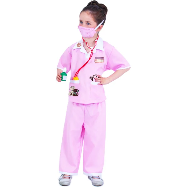 Costume incroyable pour petites vétérinaires ! Le costume en taille S est destiné aux petites filles âgées de 4 à 6 ans (105-116 cm). Le set comprend une blouse avec un pantalon rose avec un motif animal stylé. Le paquet comprend également un masque.