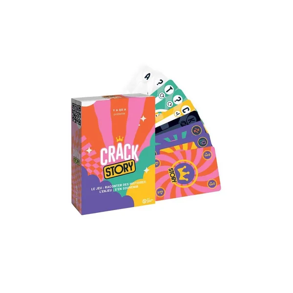 Crack Story, c’est un jeu de cartes dans lequel les joueurs créent ensemble une histoire, (une story) en utilisant leurs cartes comme 1ères lettres des nouveaux mots qu’ils vont ajouter, au gré de leur inspiration et de leur fantaisie. Le 1er à se débarrasser de ses cartes remporte la partie.