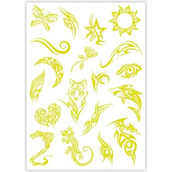 Ensemble de tatouages temporaires avec des motifs tendance, pour que vous puissiez exprimer votre propre style sur votre peau. Le tatouage brille dans l’obscurité, donc vous ne passerez jamais inaperçu !