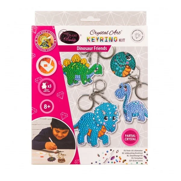 Ensemble de porte-clés en cristal « Amis des dinosaures »