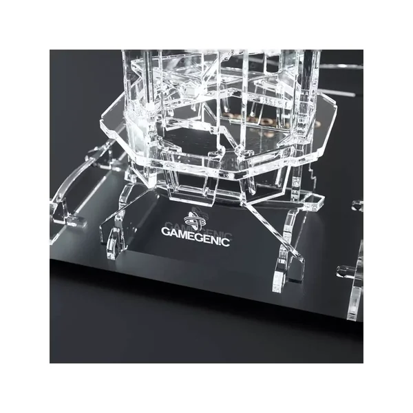 La Crystal Twister : Premium Dice Tower est une tour à dés de qualité supérieure avec effet de roulement captivant de la marque Gamegenic de 8x8cm et 23 cm de haut. La piste 19 x 14 cm, avec 2 cm de bords.