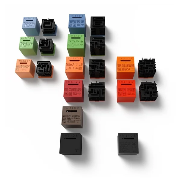 Dans INSIDE3, vous menez la bille au sein des ténèbres, en aveugle. Votre seul guide est le plan gravé en surface. Libérez la bille, regardez la partir au cœur du cube, guidez la jusqu’à la lumière.