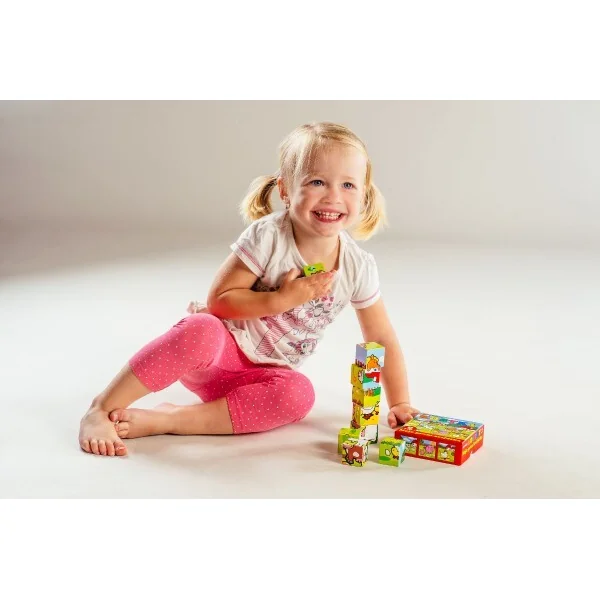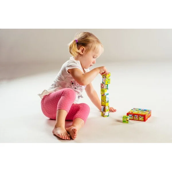 Des cubes en bois avec des images colorées d’animaux domestiques sont un excellent choix pour les plus petits.
