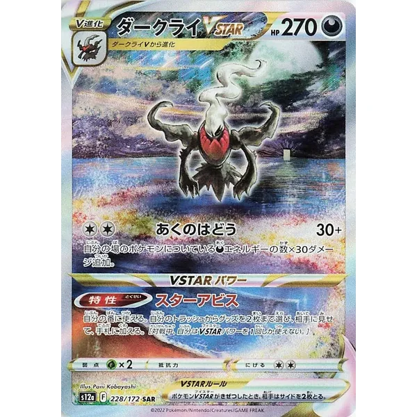 Découvrez Darkrai (s12a228), une carte Pokémon de l’extension VSTAR Universe, provenant du bloc Sword & Shield Era. Idéale pour compléter votre collection, cette carte Alternative plaira autant aux collectionneurs qu’aux joueurs.